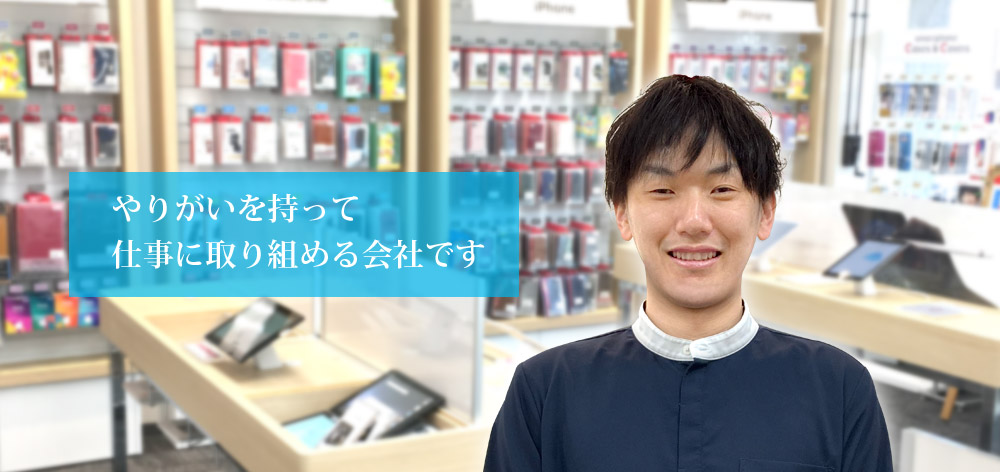 もともと大学卒業後に地元舞鶴での就職を考えていました。携帯と接客が好きだったので携帯の仕事を調べていたところ佐古田電機の存在を知り、それがきっかけで入社いたしました。